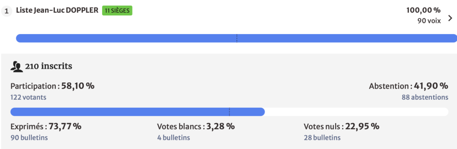 Nuls 0 votes Blancs 4 votes 4,44 %