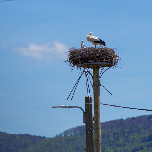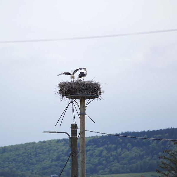 Du haut de leur nid, deux jeunes ( peut-être trois ) découvrent les terres de leur futur apprentissage au vol et à la chasse.
