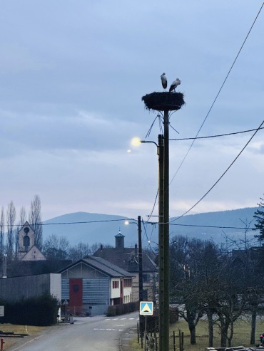 Marie et Luc ont observé le retour au nid de la première cigogne.